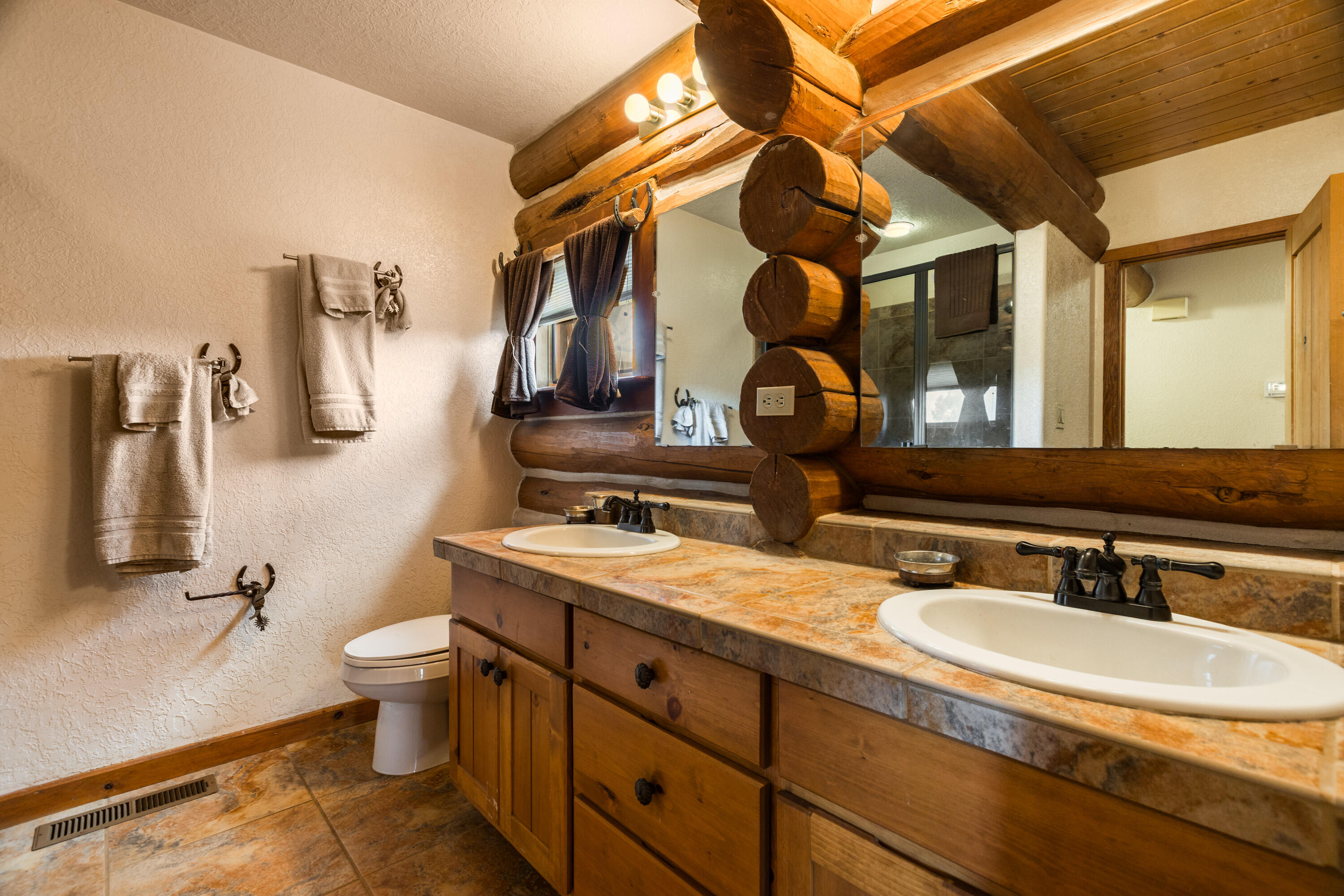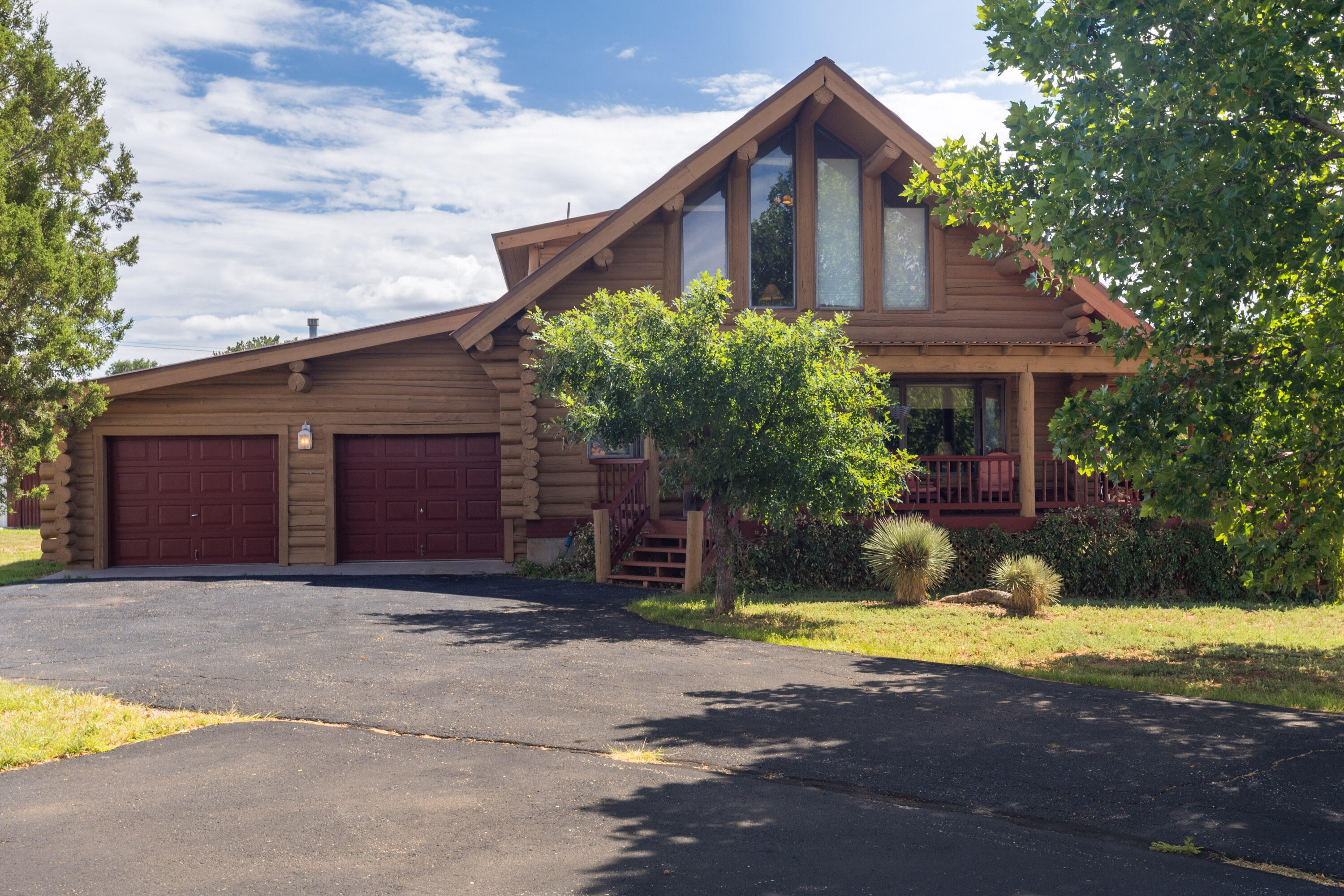 Step into your dream home in the scenic beauty of Tijeras NM. Only 25 minutes from the city. This is a genuine adobe/log cabin with an expansive deck to relax and enjoy the majestic views anytime day or night. Distinctive antique appliances are gorgeous! Pellet stove to keep you warm. Beautiful wood floors, hand shaved hickory and knotty pine. This charming home boasts a delightful blend of modern convenience and country charm. Incredible 2000sf workshop/garage which includes 3 sectional doors, the center door is 12x14 and the other 2 are 10x12. Bring your bus/rv/boat any toys! Corral for horses also. Spectacular property. Propane and water softener owned.