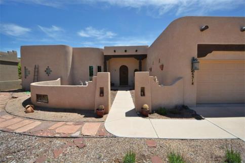 Custom elegance! Beautifully landscaped, private courtyard with roses, shrubs, and trees. Well designed floor plan. Master bedroom split plan with 3 BDRs plus a flex room, could be a 4th BDR or a second living area or large office. Gourmet kitchen with gorgeous granite, custom cabinetry, large pantry, roll out cabinets, sunny breakfast nook and breakfast bar. Master suite has his/her vanities, jetted tub, two closets and a linen closet. Guest bedroom in separate wing has patio access. Radiant heat plus furnace, refrigerated air, Vigas, Hickory wood floors, custom Kiva fireplace. Desirable neighborhood of Vista Entrada, paved road, city water, city sewer! Close to shopping, restaurants, Bosque walk trails, 45 min to Santa Fe!