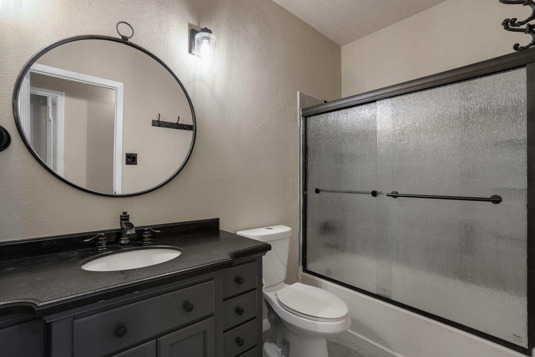 A rare find, this beautifully customized home offers luxury features & thoughtful details throughout: contemporary lighting, NuCORE waterproof flooring, designer paint colors, & customizable outdoor lighting. The kitchen boasts stainless appliances with a double-oven convection range. The primary bath features blue/green glass vessel sinks, white cabinetry, designer tile shower surround & antique gold finishes. The updated guest bath boasts an antique-style vanity, tiled surround, & waterfall glass doors with oil-rubbed bronze finishes. Both showers w/waterfall heads. The peaceful & private backyard retreat offers a lush green lawn, flagstone pavers, lots of trees & shrubs, a calming year-round water fountain, a pergola, fire pit, dog run, BBQ grill, & a nearly new, easy-to-clean hot tub