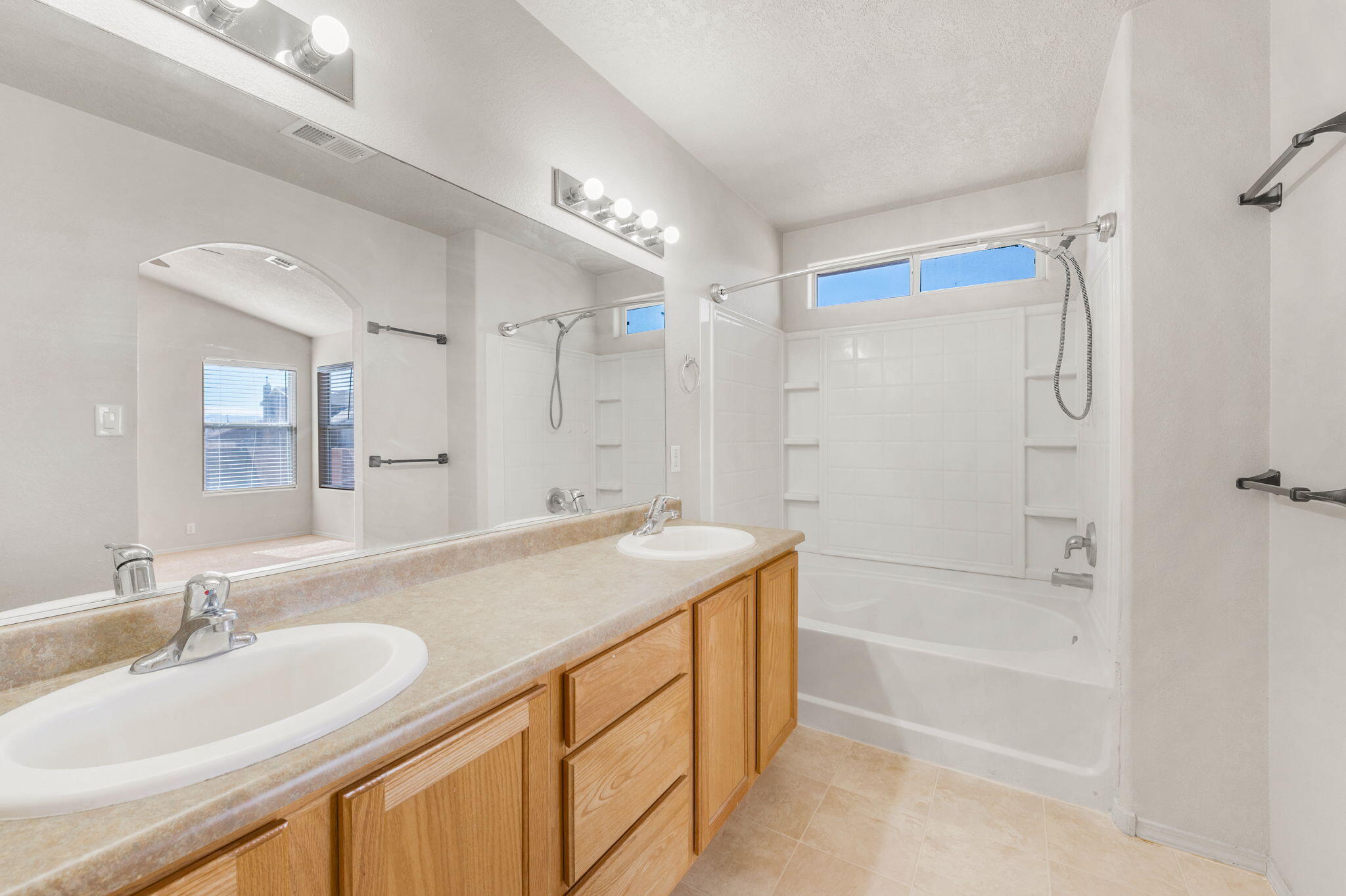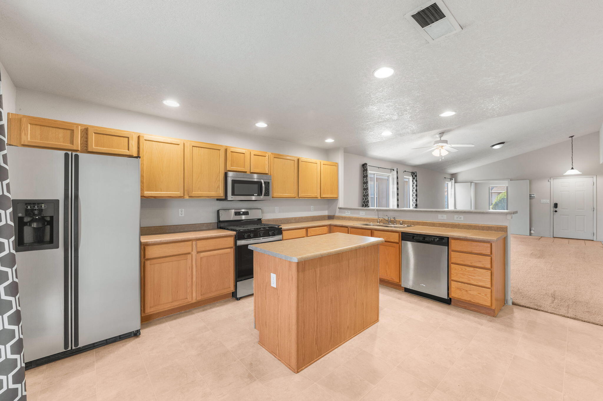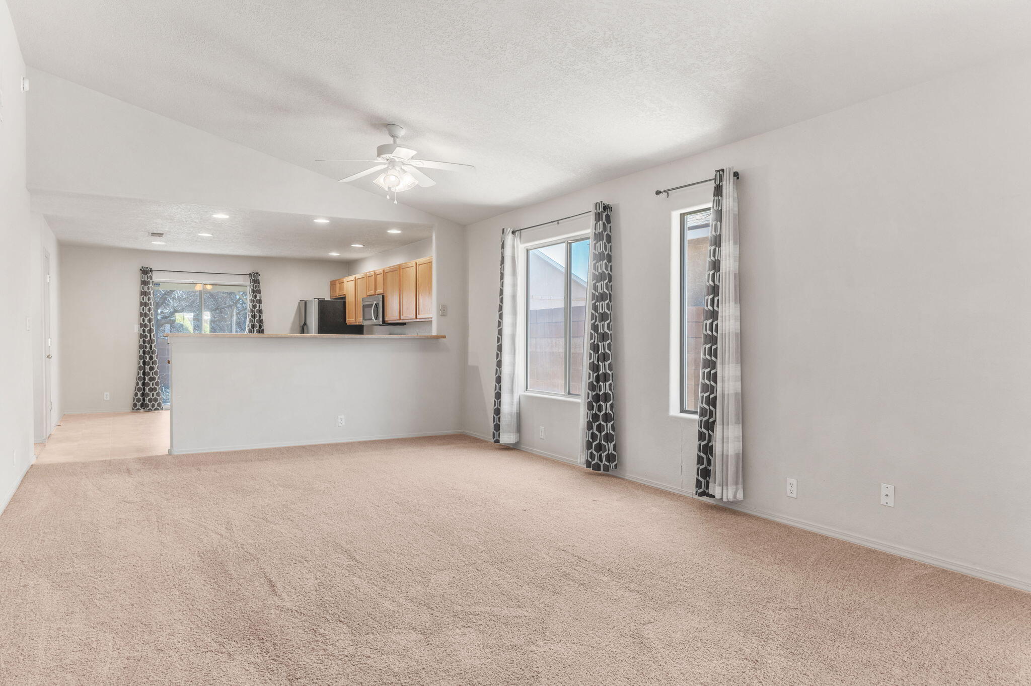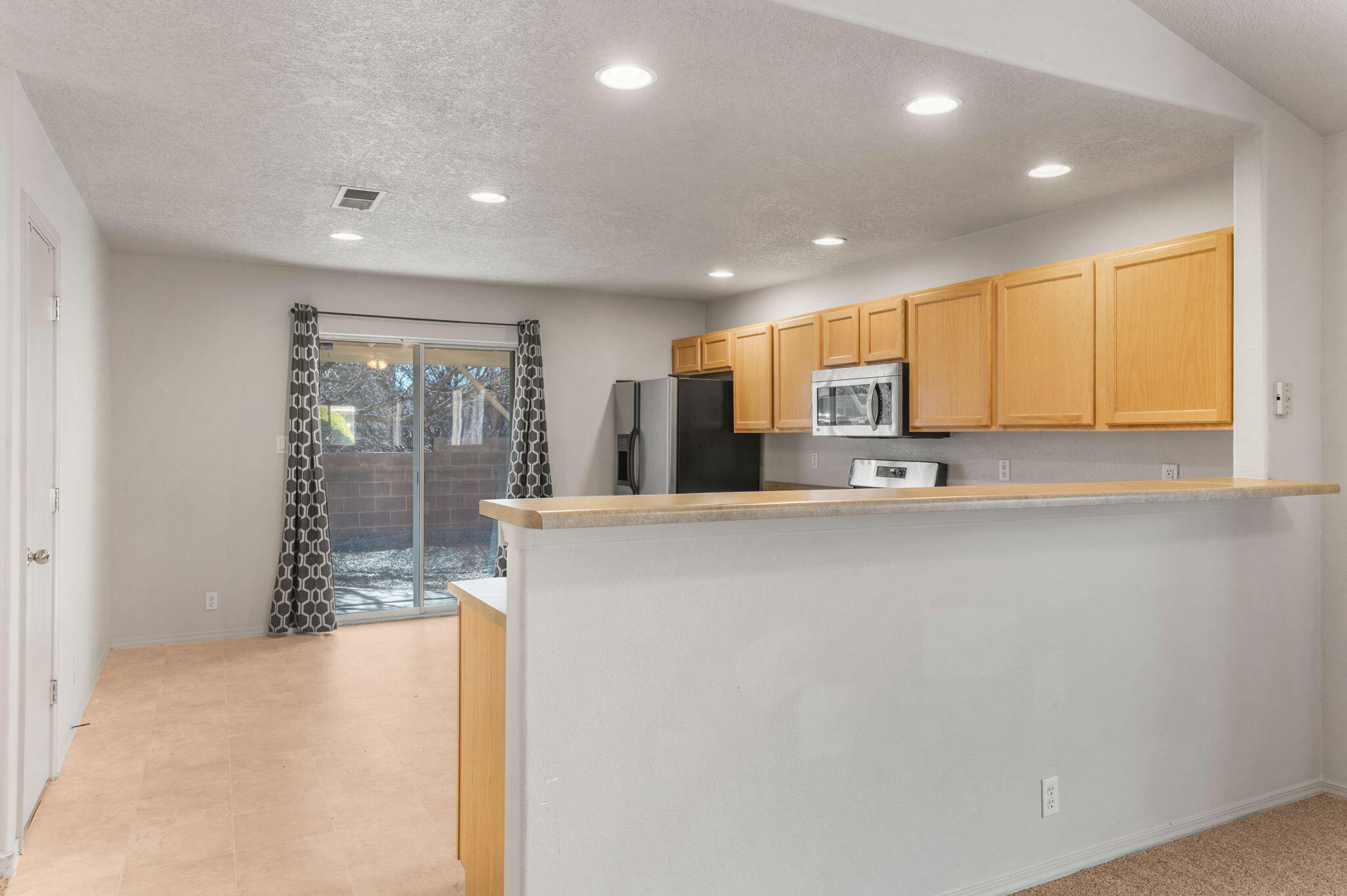 CHARMING SINGLE-STORY HOME IN RIO RANCHO'S NORTH HILLS. This inviting residence offers a functional & comfortable living environment. The bright great room concept floorplan creates an open & spacious layout. Kitchen is equipped with stainless steel appliances, new gas range, breakfast nook area, & center island, making meal prep & dining enjoyable. Bonus: REFRIGERATED AIR! 4th bdrm off of great room could serve as Office/hobby room. The privately situated primary suite offers a large walk-in closet, double vanity, & garden tub/shower combo providing a peaceful retreat. Outside, relax under the covered patio enjoying a low-maintenance landscape that requires minimal upkeep. Conveniently located close to parks, schools, local amenities, UNM Sandoval hospital & Hewlett Packard.