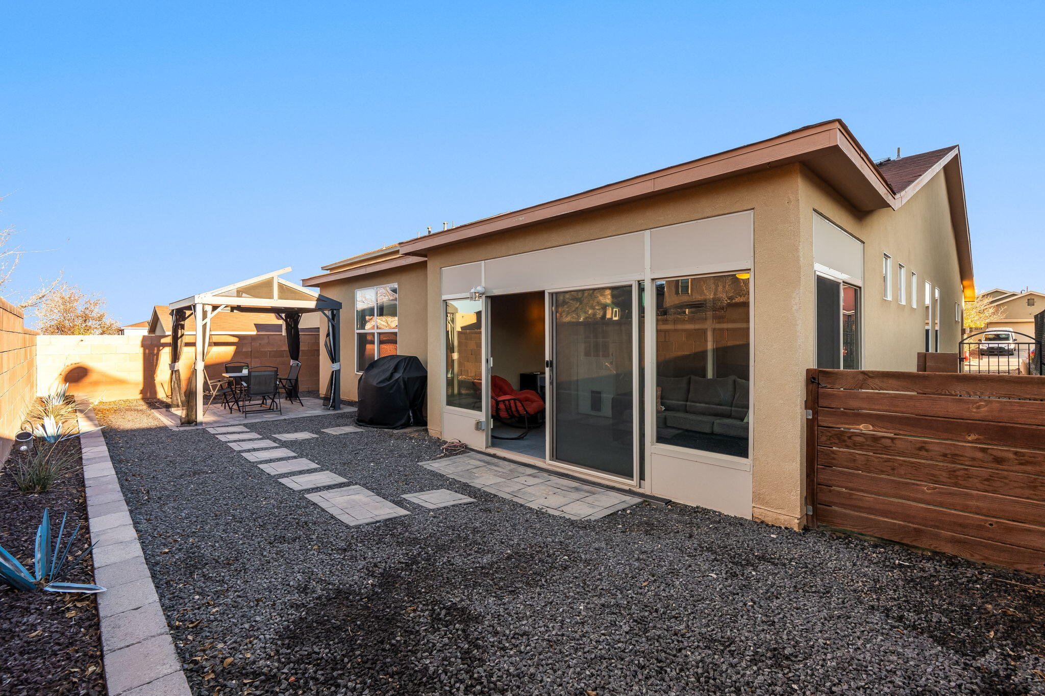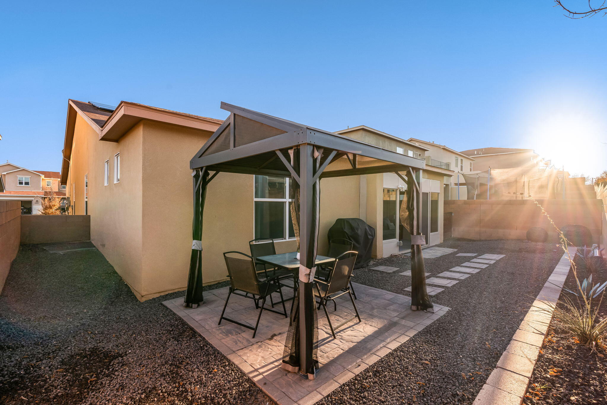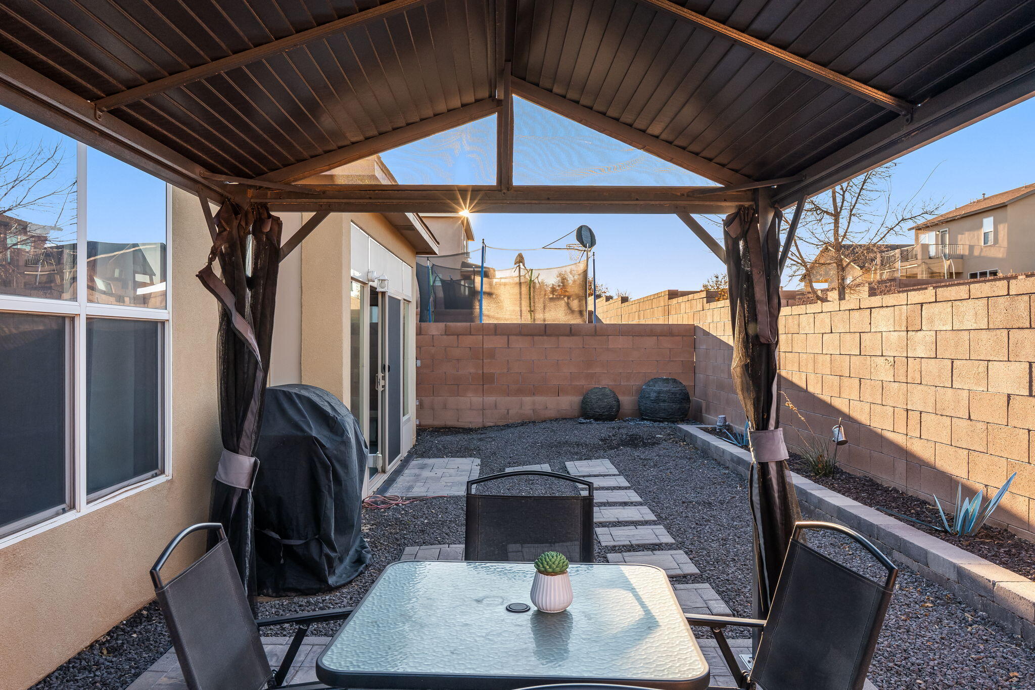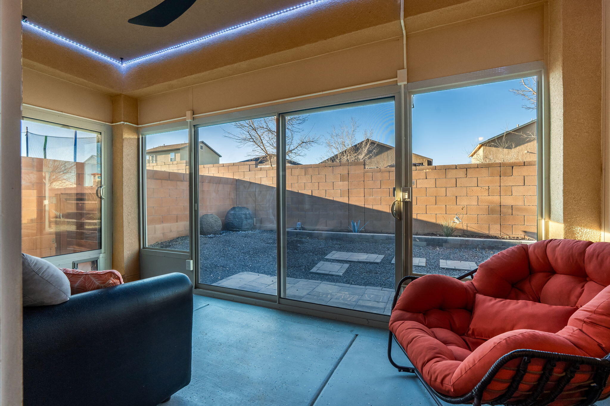 Welcome to this move in ready single story home that balances comfort and functionality. Home features two distinct living areas, providing flexibility for both relaxation and entertainment. Open floorplan with family room, dining and kitchen creates an easy flow to move around and living effortless. The oversized primary bedroom serves as a true retreat, offering ample space for furniture and creating a peaceful sanctuary at the end of the day. One standout feature is the enclosed sunroom, which adds extra living space flooding the area with natural light. X-scaped back yard with pergola & water features provides low maintenance. Located in Rio Rancho. this home provides convenient access to local schools, parks and shopping. Seller will pay off solar at closing!
