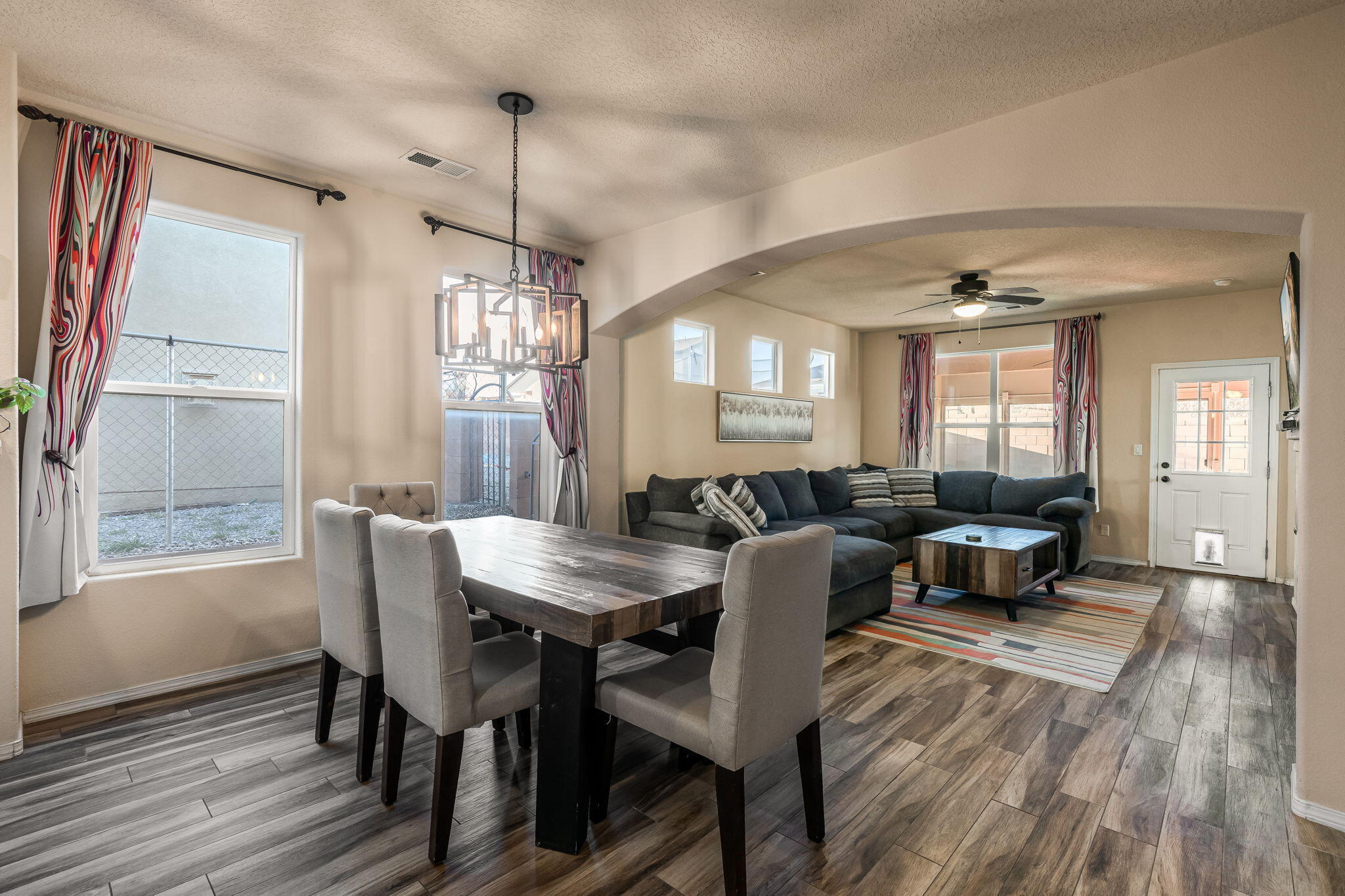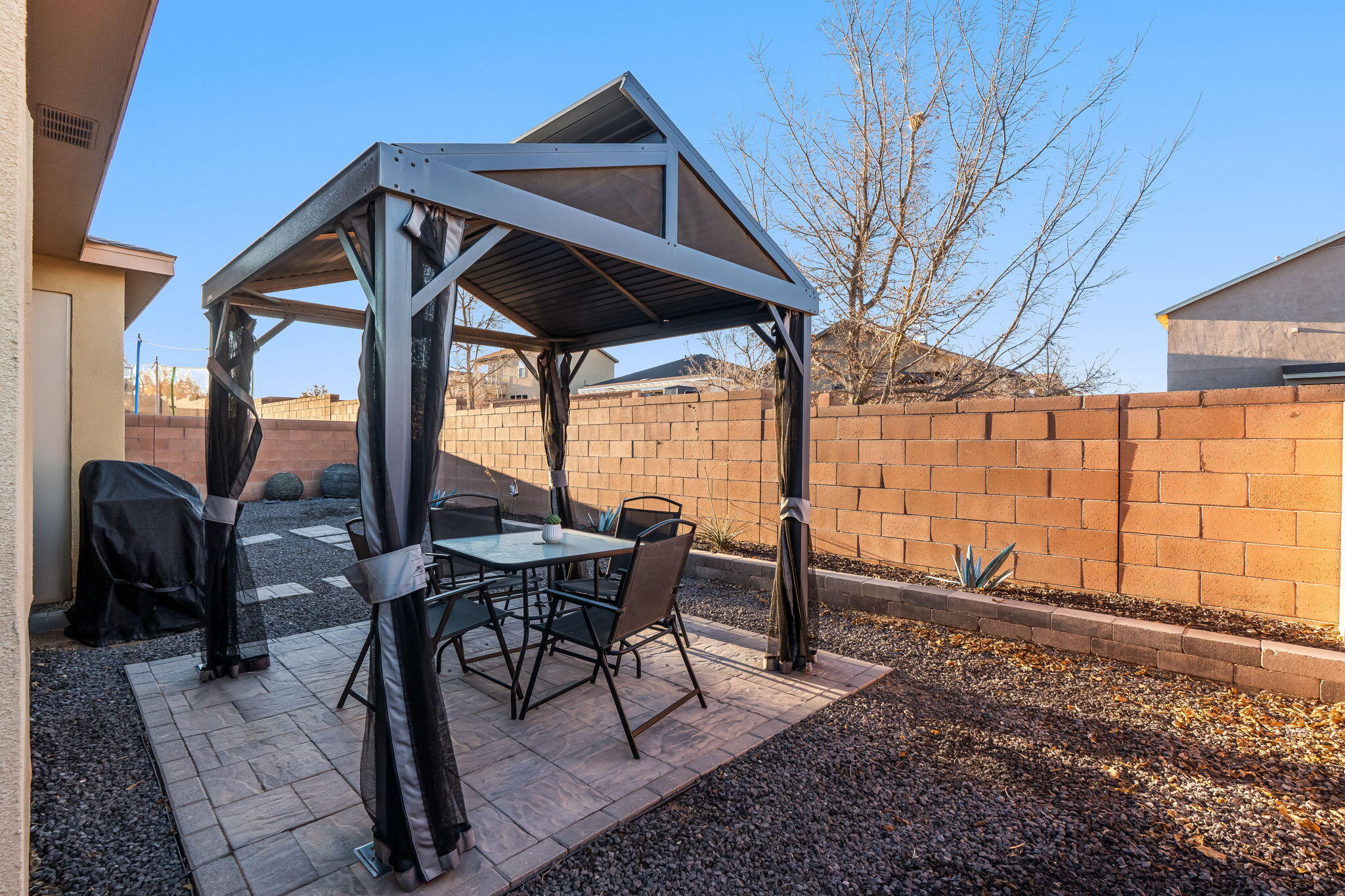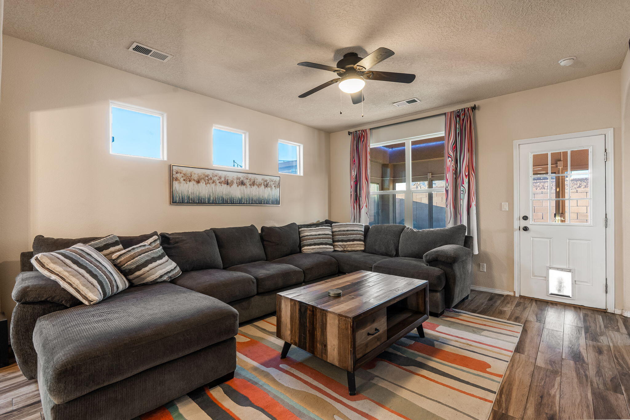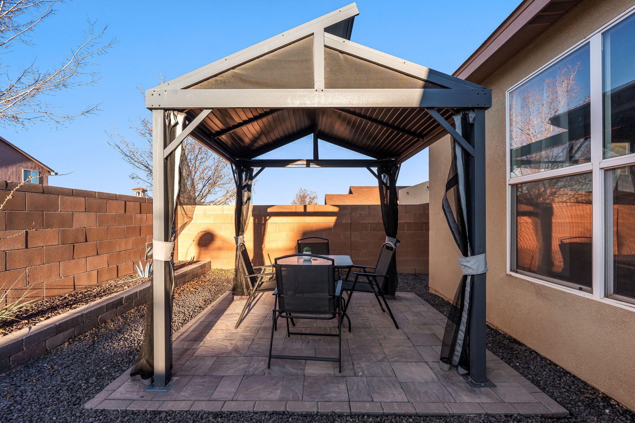 Welcome to this move in ready single story home that balances comfort and functionality. Home features two distinct living areas, providing flexibility for both relaxation and entertainment. Open floorplan with family room, dining and kitchen creates an easy flow to move around and living effortless. The oversized primary bedroom serves as a true retreat, offering ample space for furniture and creating a peaceful sanctuary at the end of the day. One standout feature is the enclosed sunroom, which adds extra living space flooding the area with natural light. X-scaped back yard with pergola & water features provides low maintenance. Located in Rio Rancho. this home provides convenient access to local schools, parks and shopping. Seller will pay off solar at closing!