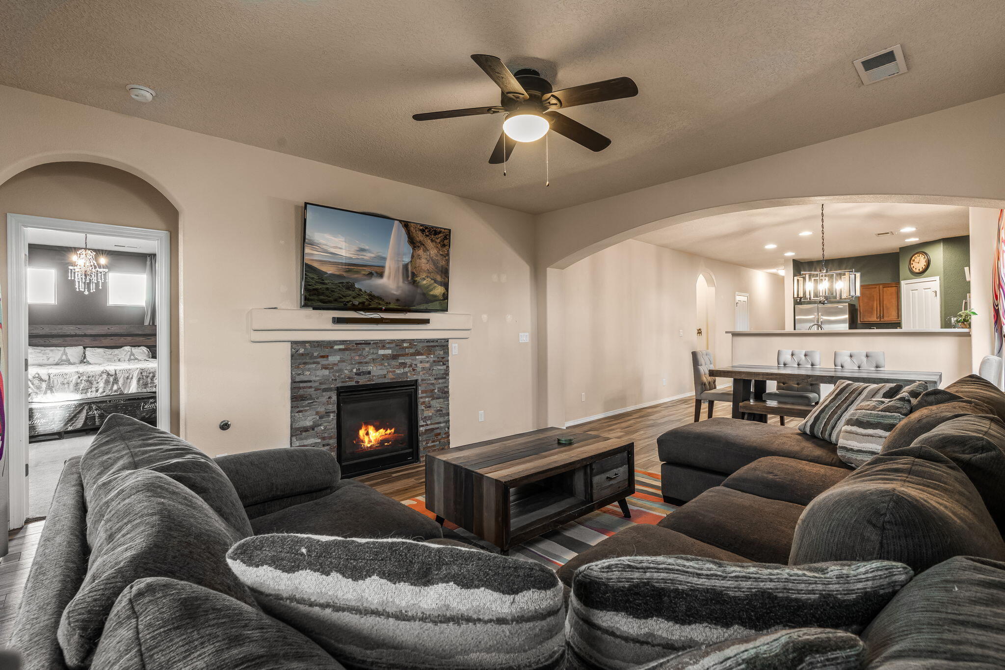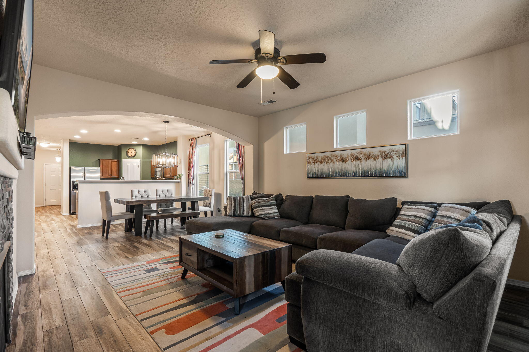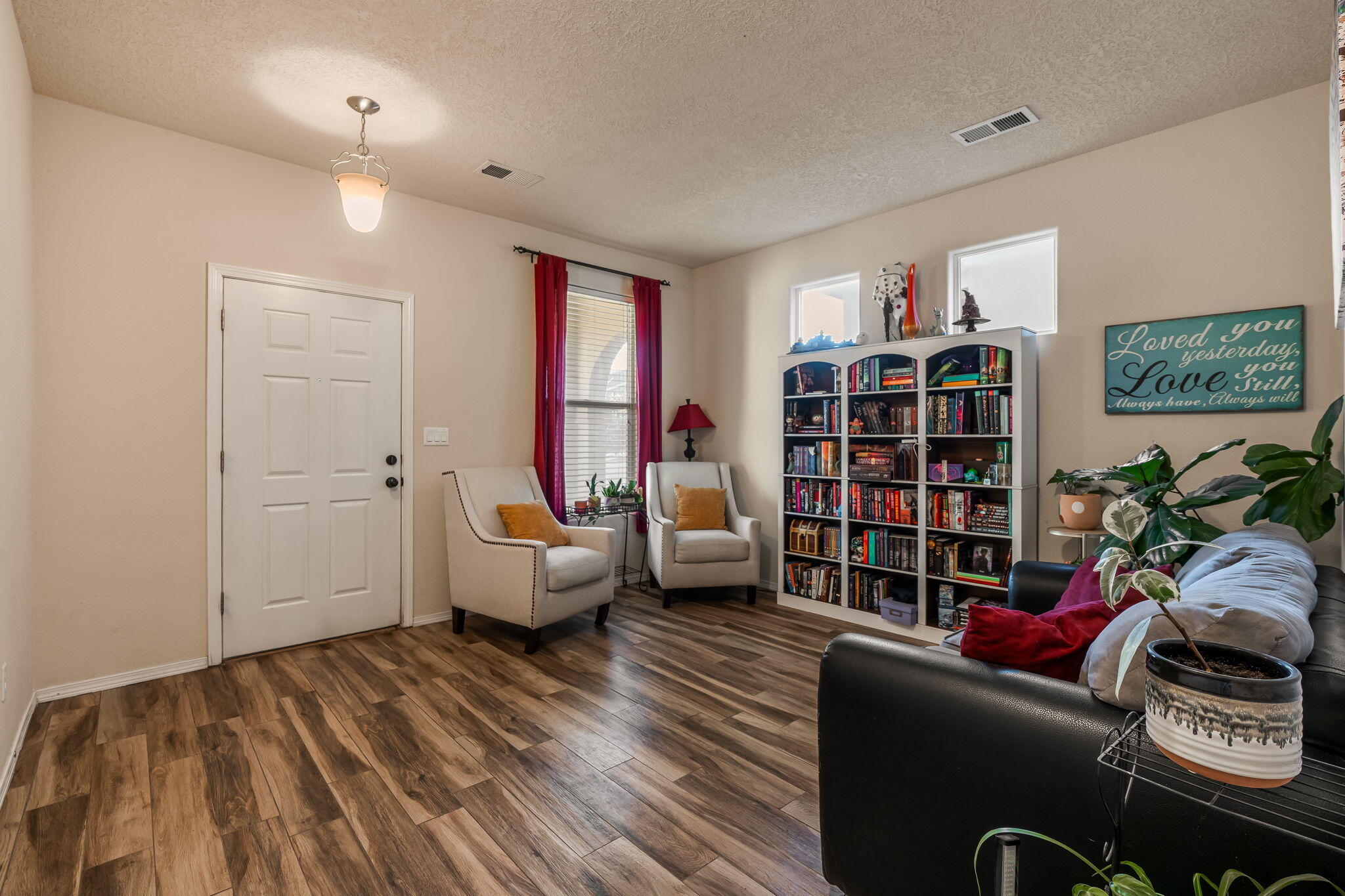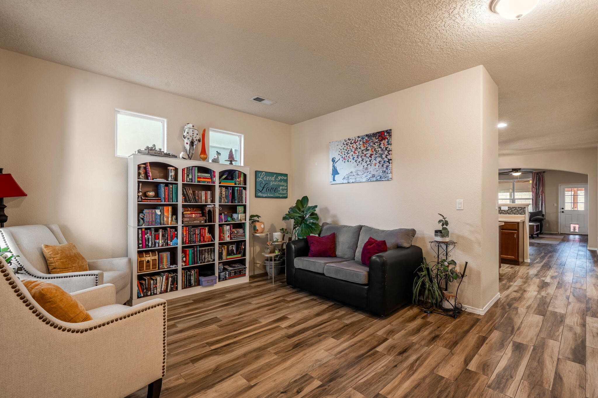 Welcome to this move in ready single story home that balances comfort and functionality. Home features two distinct living areas, providing flexibility for both relaxation and entertainment. Open floorplan with family room, dining and kitchen creates an easy flow to move around and living effortless. The oversized primary bedroom serves as a true retreat, offering ample space for furniture and creating a peaceful sanctuary at the end of the day. One standout feature is the enclosed sunroom, which adds extra living space flooding the area with natural light. X-scaped back yard with pergola & water features provides low maintenance. Located in Rio Rancho. this home provides convenient access to local schools, parks and shopping. Seller will pay off solar at closing!