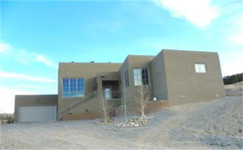 Gorgeous custom home on almost 2.5 acres w/amazing views & room for horses! Open floorplan w/nichos & arches, skylights + lots of windows for incredible views & lots of natural light. Spacious kitchen w/island & top of the line appliances opens to large great room w/custom gaslog fireplace. Huge master bedroom & bath w/jetted tub & separate shower for two. Free electricity, totally self-sufficient! Photovoltaic system means you never pay electric bills, PNM actually pays you avg. of $60/mo!