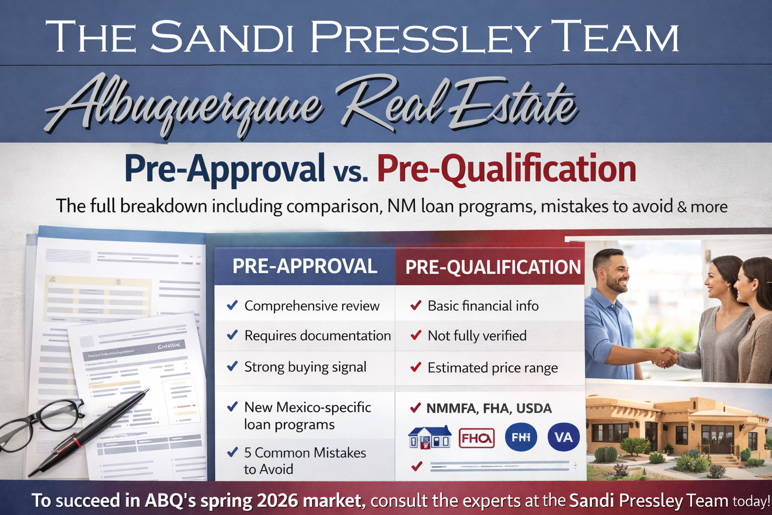 If you're getting ready to buy a home in Albuquerque — whether you're eyeing a classic adobe in the North Valley, a modern townhome in Nob Hill, or a spacious single-family home in Rio Rancho — there are two words you're going to hear over and over again before you ever step inside an open house: pre-qualification and pre-approval.