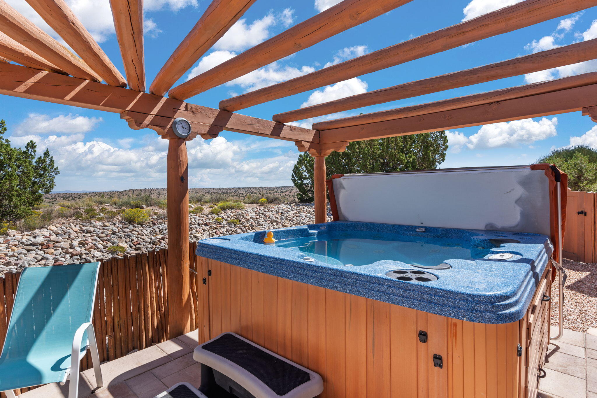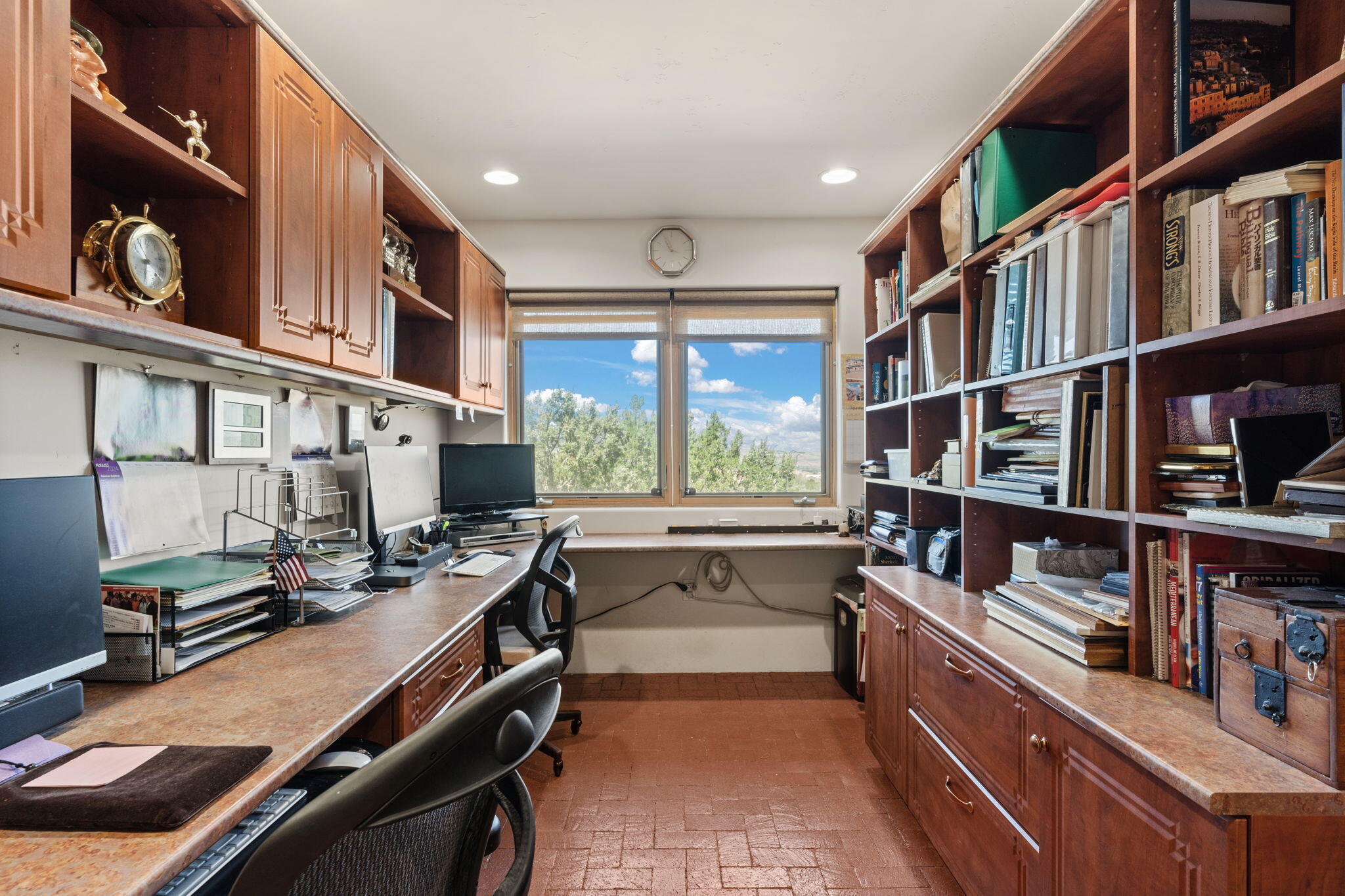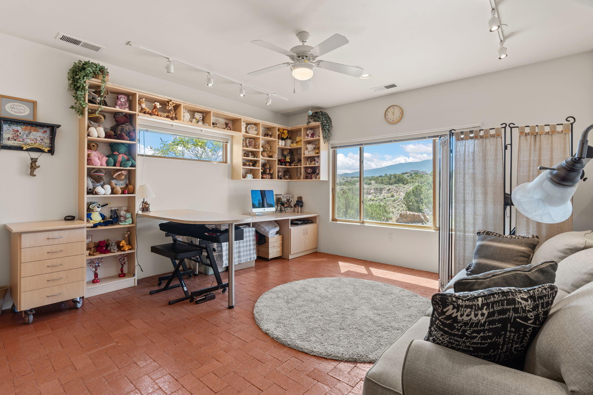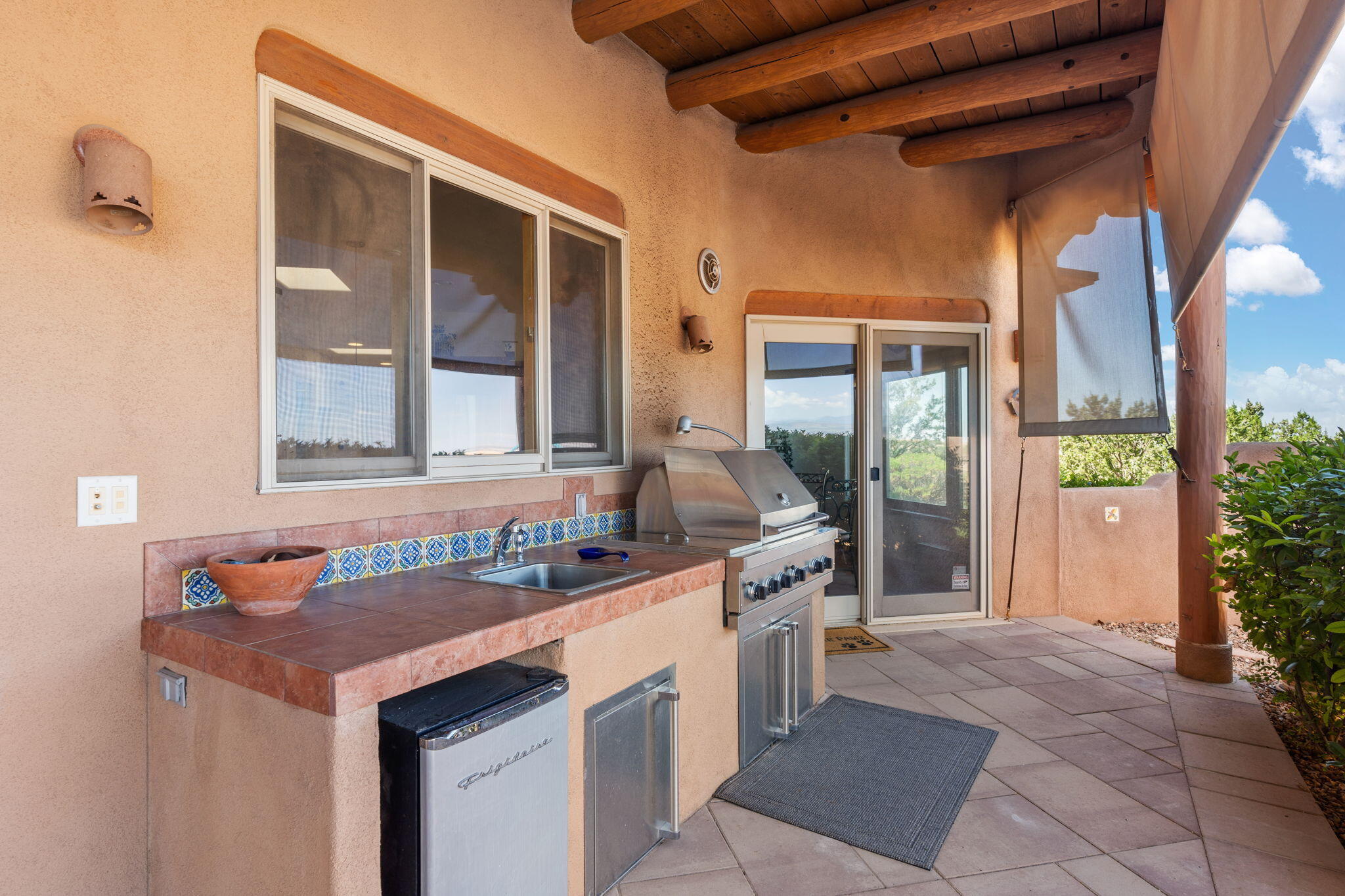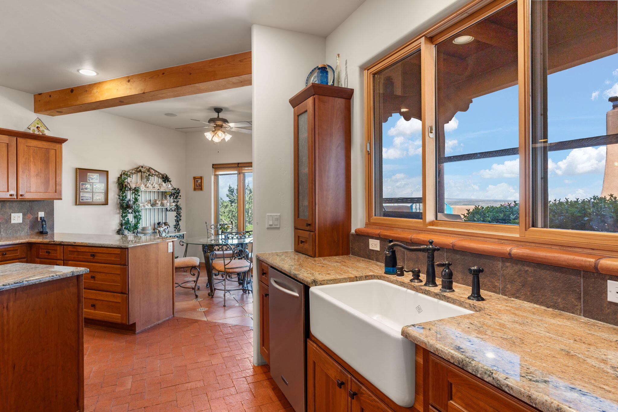 Exquisite Custom Placitas Home situated on over 3.7 acres with Stunning Views! Welcoming courtyards leads you into the open & bright floorplan boasting architectural & design details throughout that include raised wood beamed & vigas ceilings; brick floors w/radiant heat; builtins & bancos; custom doors & curved archways; & so much more(See seller's Upgrade & Feature page)! Well-appointed Chef's kitchen w/Stainless Steel built in appliances including a warming drawer & pot filler; gorgeous granite counters & cabinets; & large pantry, opening to the greatroom w/custom kiva fireplace; & built-in entertainment center. Primary suite is a true retreat w/kiva fireplace & spa light ensuite w/relaxing soaking tub & steam shower; 2 walk-in closets w/custom California Closet storage.