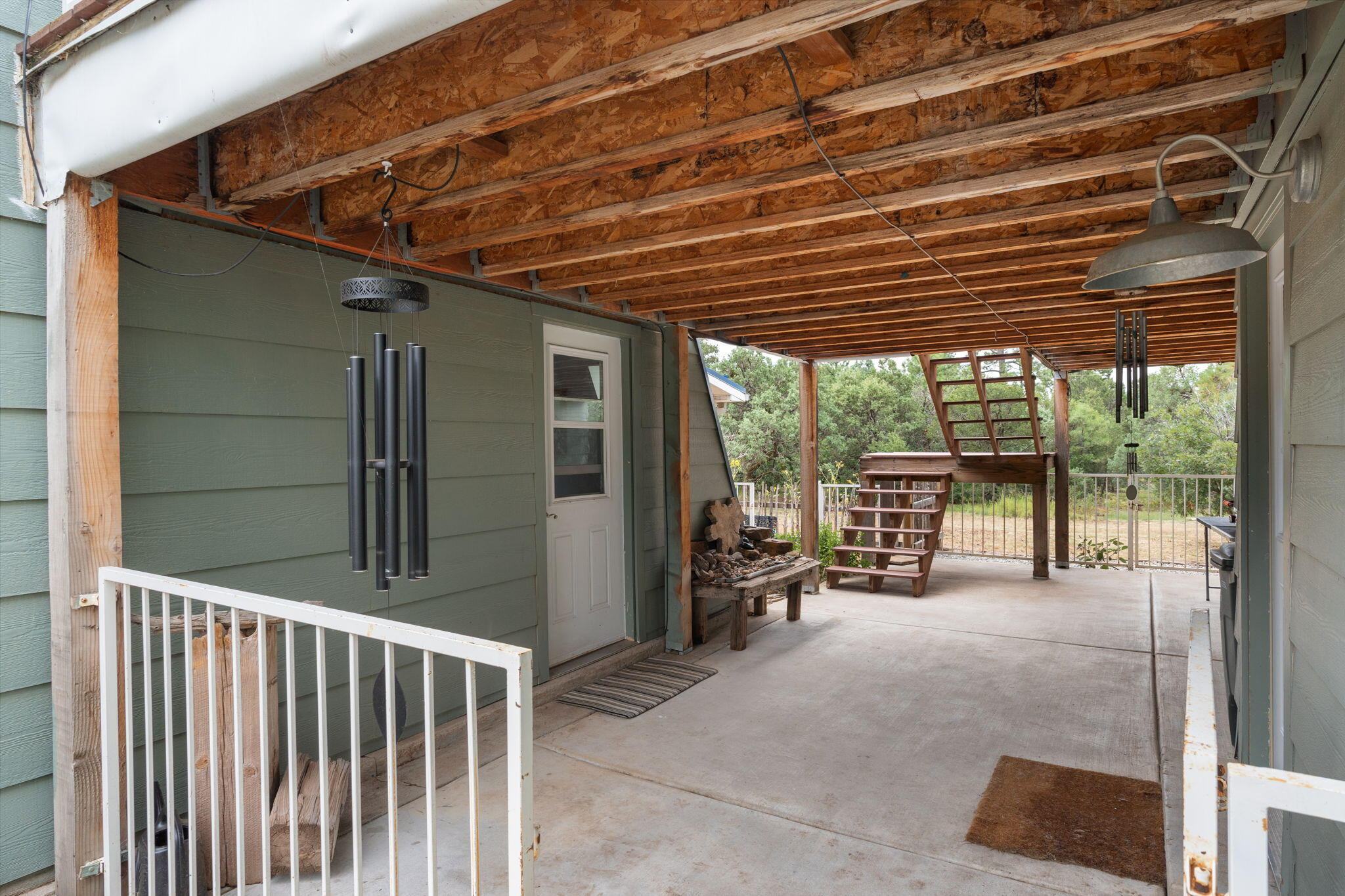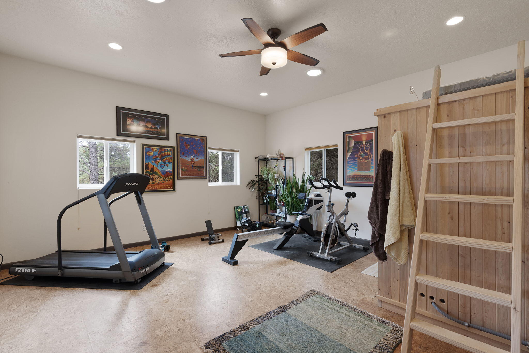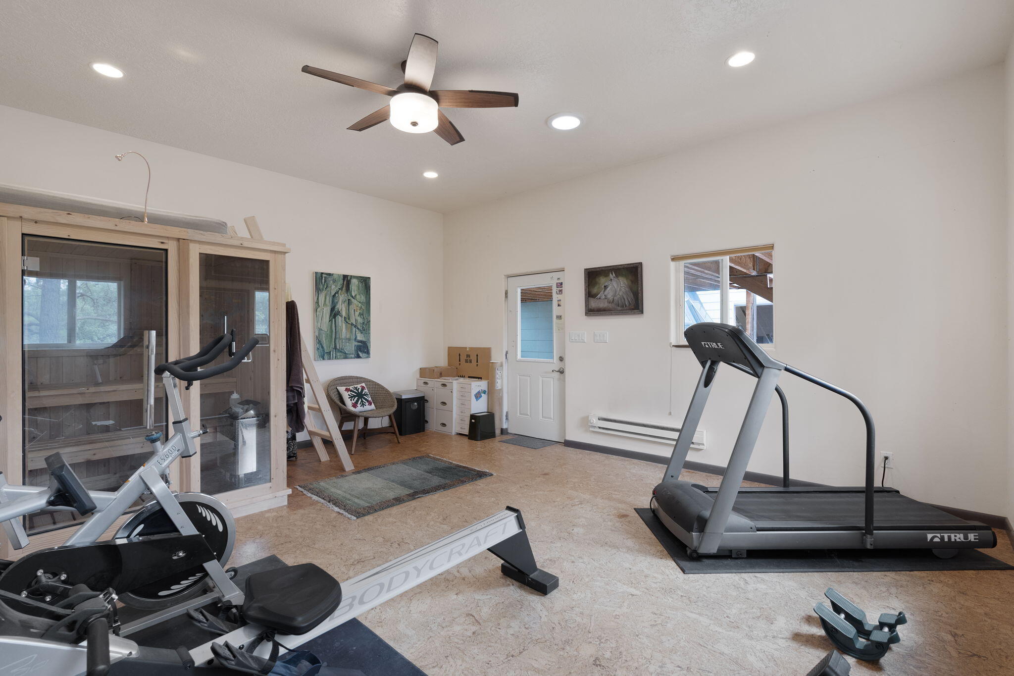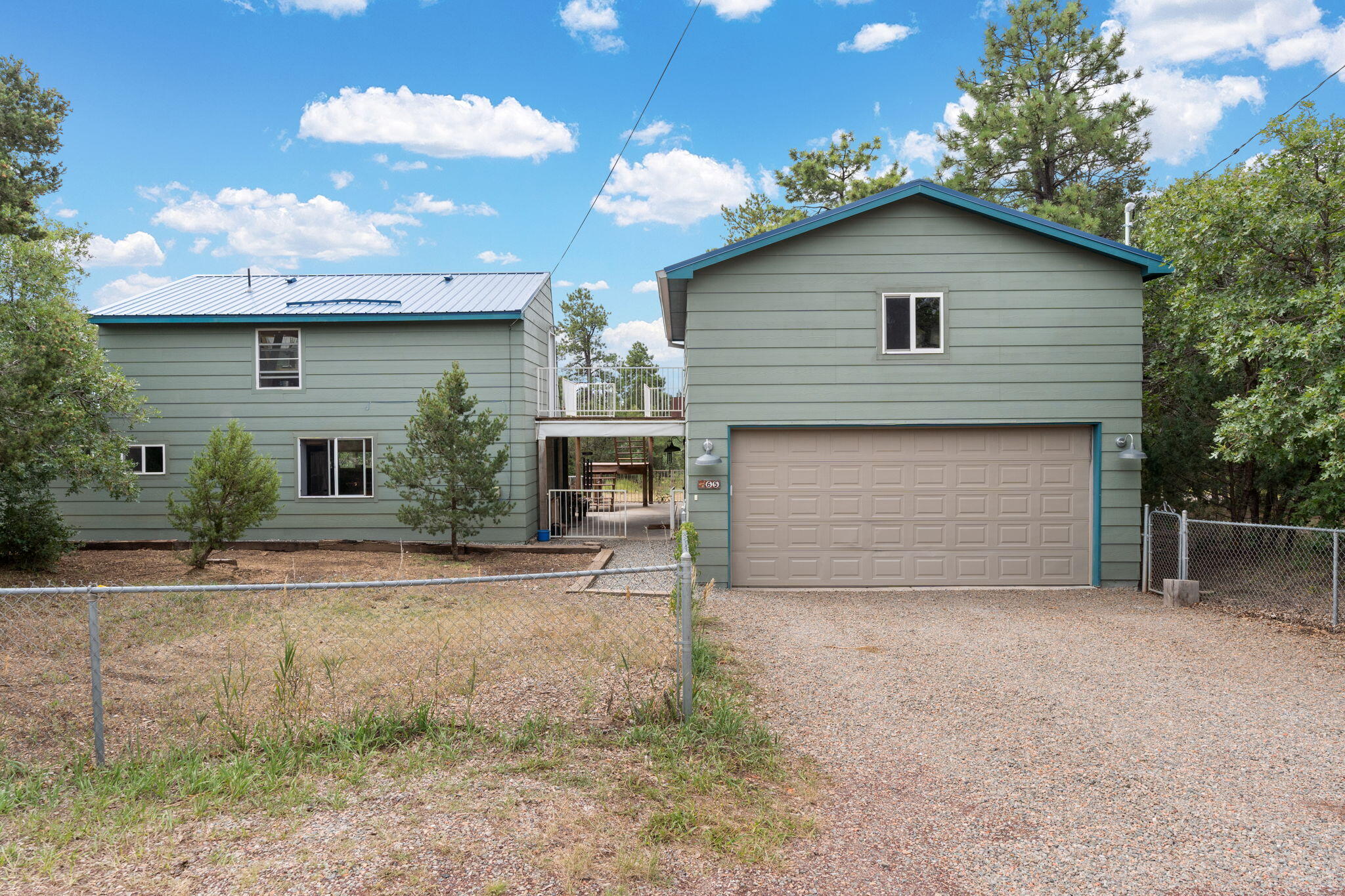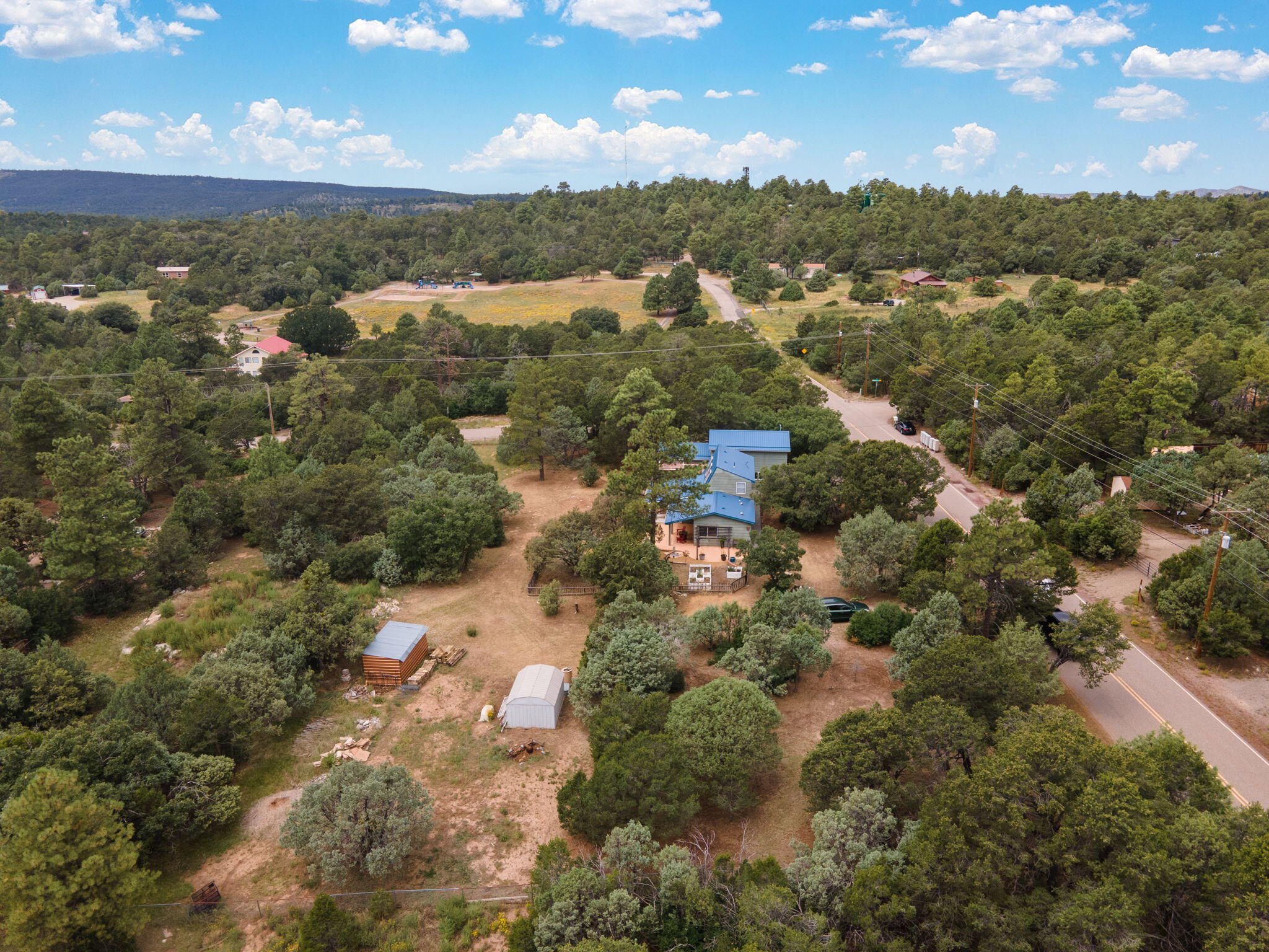 Discover this fantastic opportunity to live in the Mountains and Pines of Tijeras. This lovely 2 bedroom, 1 bathroom property offers Space, Flexibility, Comfort and Land. The main house has an open floor plan concept with a loft with pitched ceiling that offers more flexibility as a hobby room, game room or office. From the great room find big beautiful views of your own private oasis , mature trees, grassy lawn, and bird watching. Container gardening in place. Horses are a possibility here on this peaceful property. A second structure provides an oversized 2 cg, and attic for storage(must see). A fully finished heated guest suite currently being used as an exercise room with a private sauna, perfect for unwinding after a busy day. Entire property is fenced. Experience this