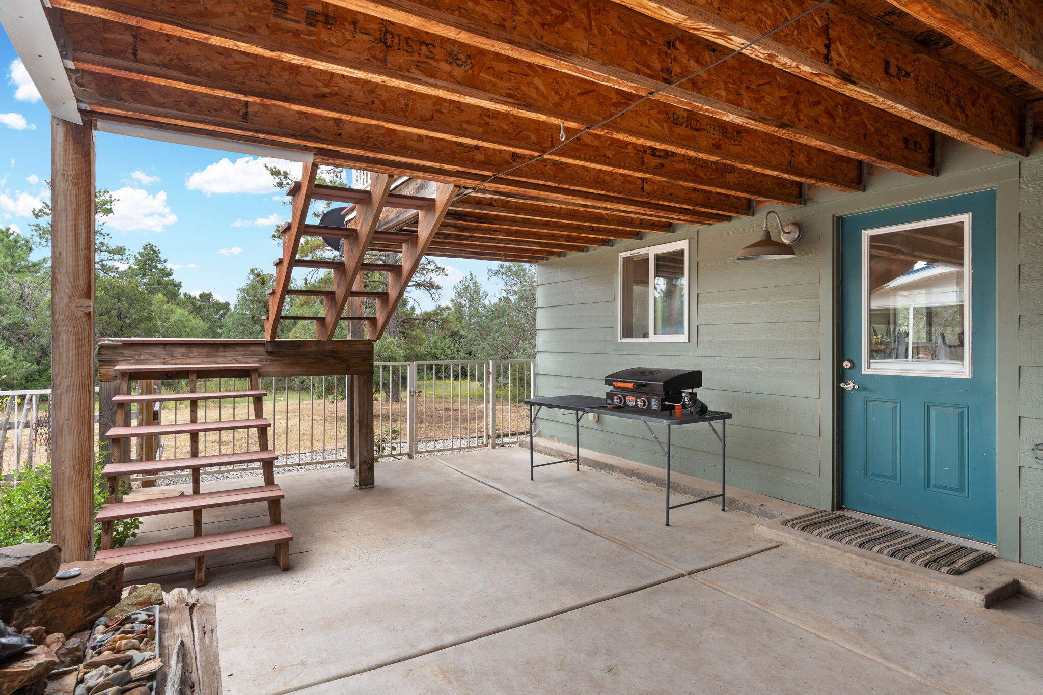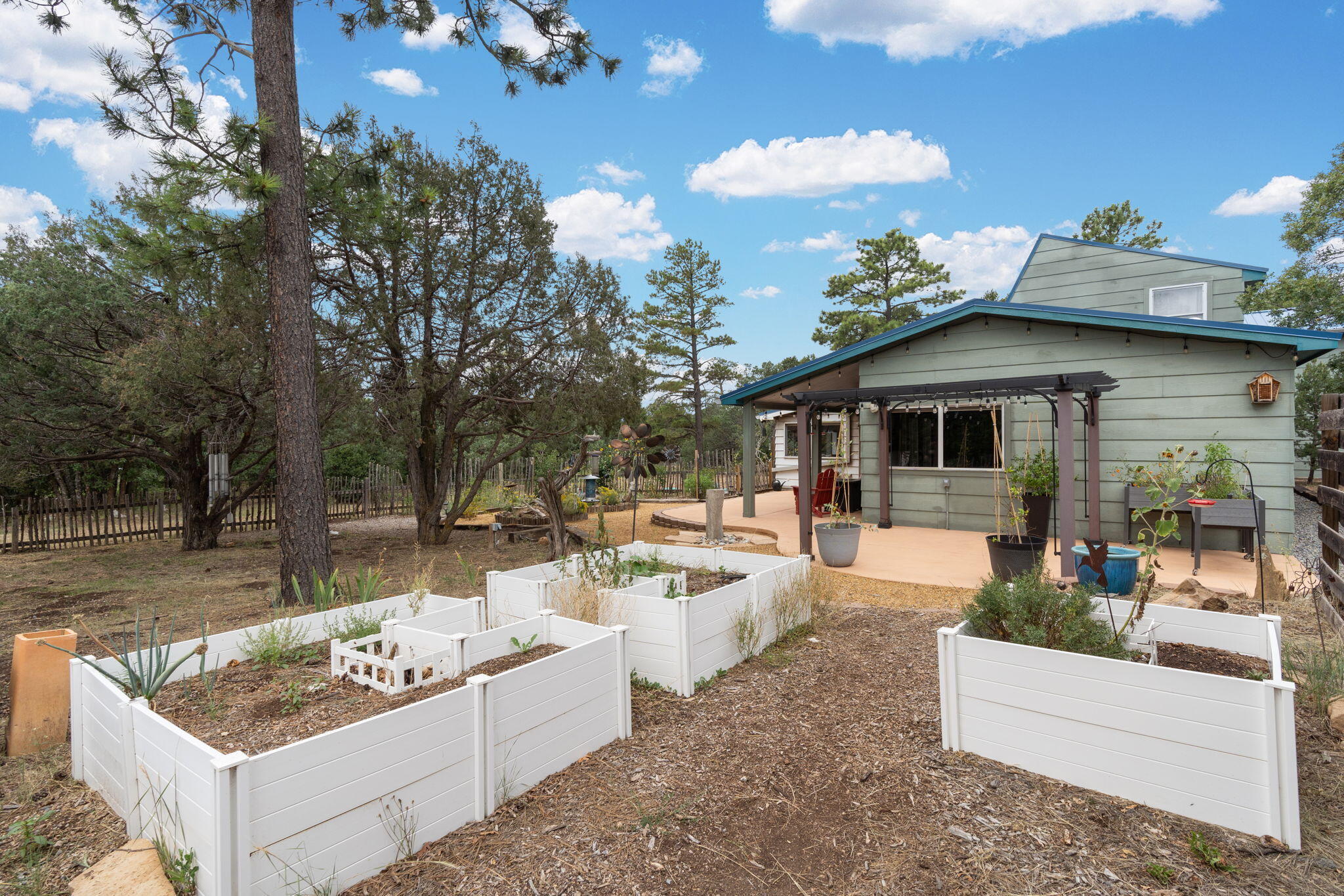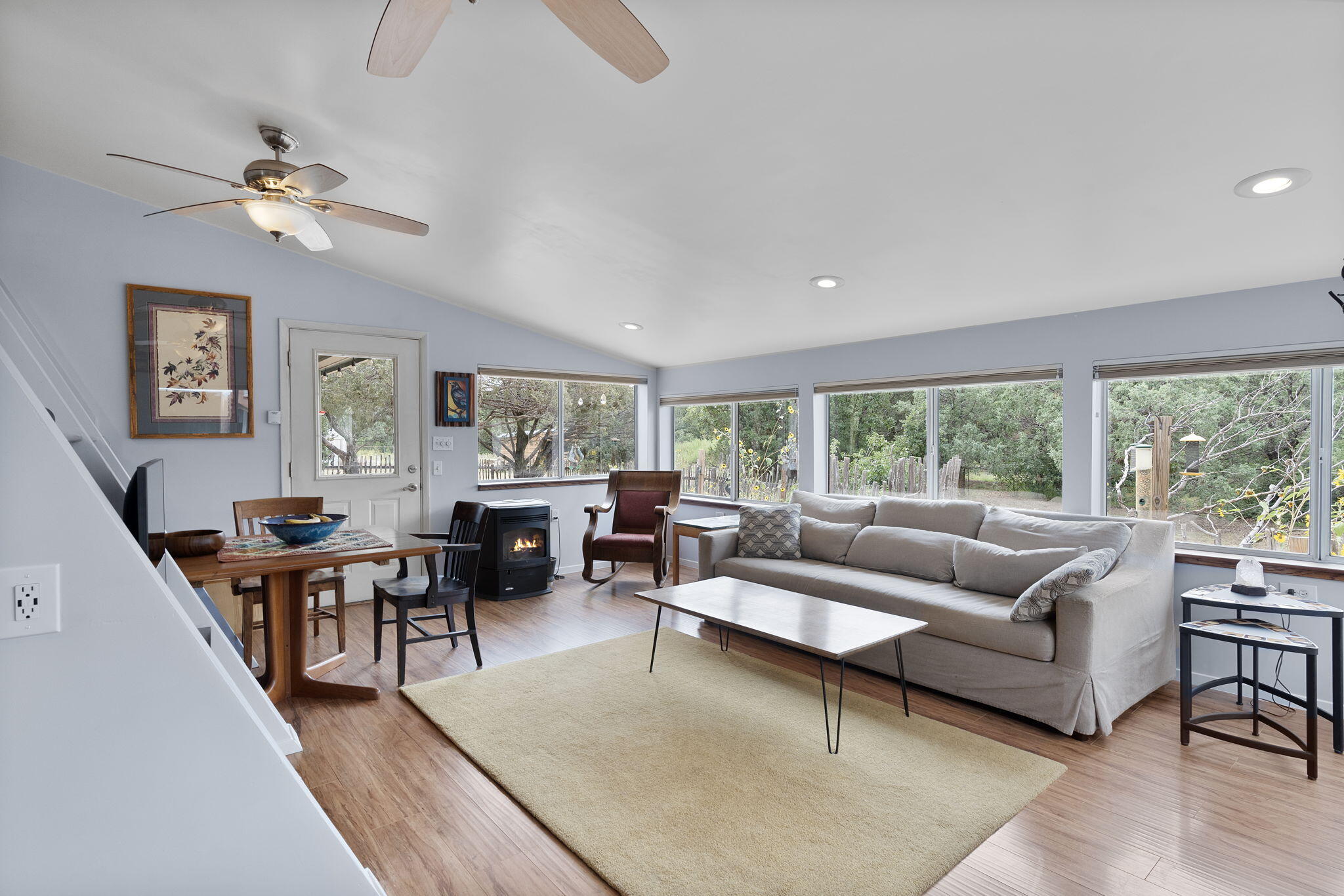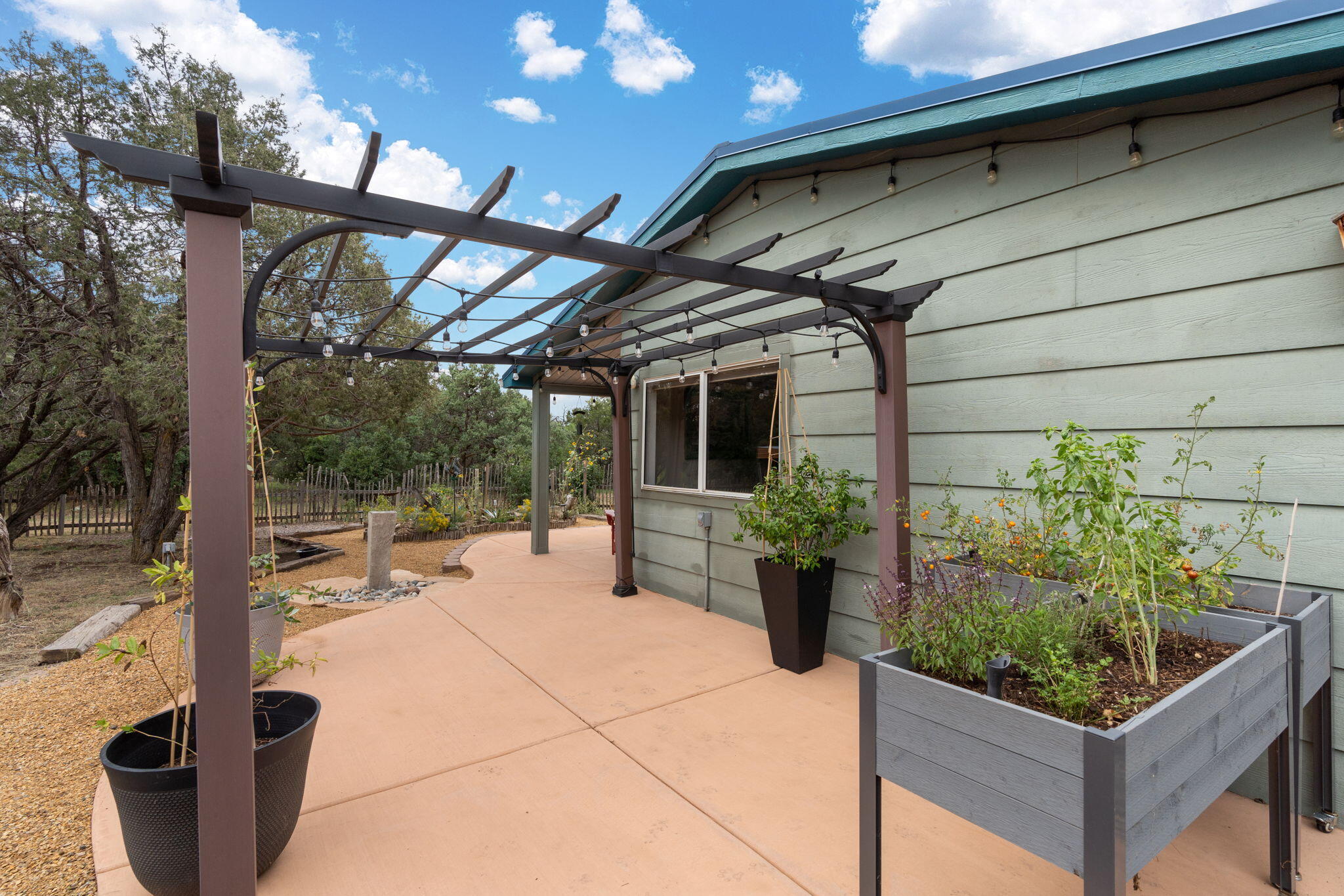 Discover this fantastic opportunity to live in the Mountains and Pines of Tijeras. This lovely 2 bedroom, 1 bathroom property offers Space, Flexibility, Comfort and Land. The main house has an open floor plan concept with a loft with pitched ceiling that offers more flexibility as a hobby room, game room or office. From the great room find big beautiful views of your own private oasis , mature trees, grassy lawn, and bird watching. Container gardening in place. Horses are a possibility here on this peaceful property. A second structure provides an oversized 2 cg, and attic for storage(must see). A fully finished heated guest suite currently being used as an exercise room with a private sauna, perfect for unwinding after a busy day. Entire property is fenced. Experience this