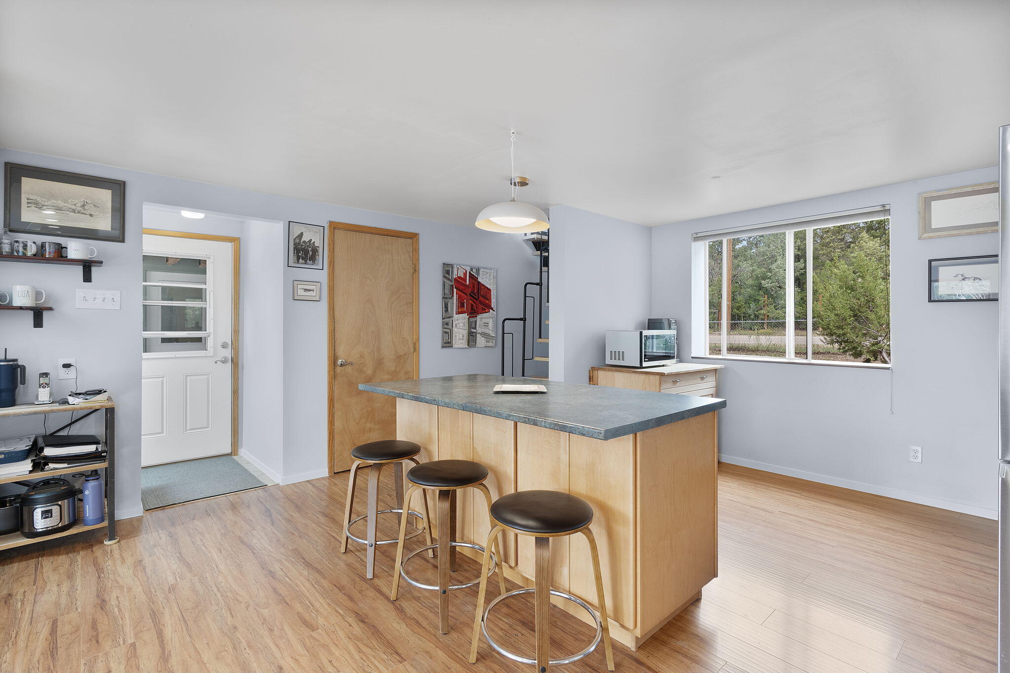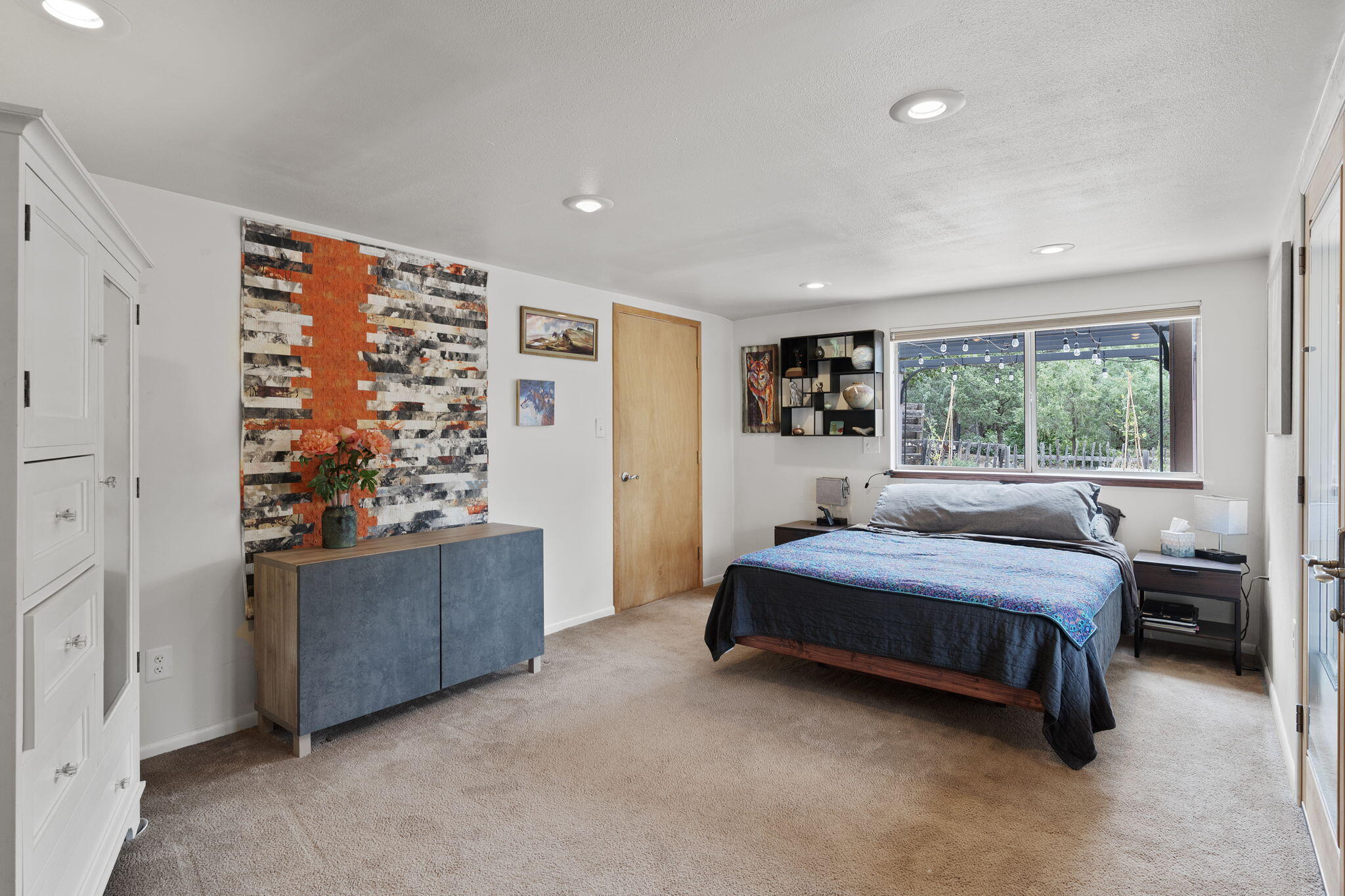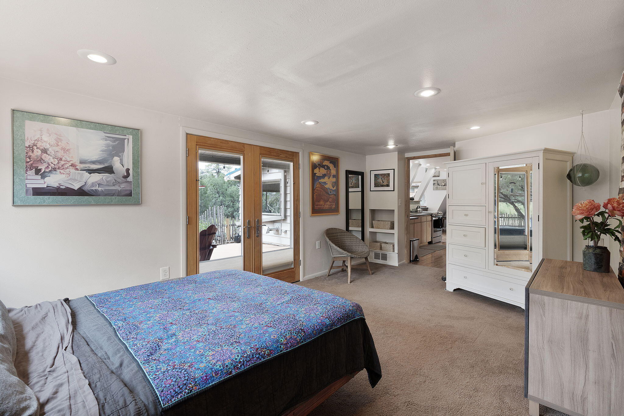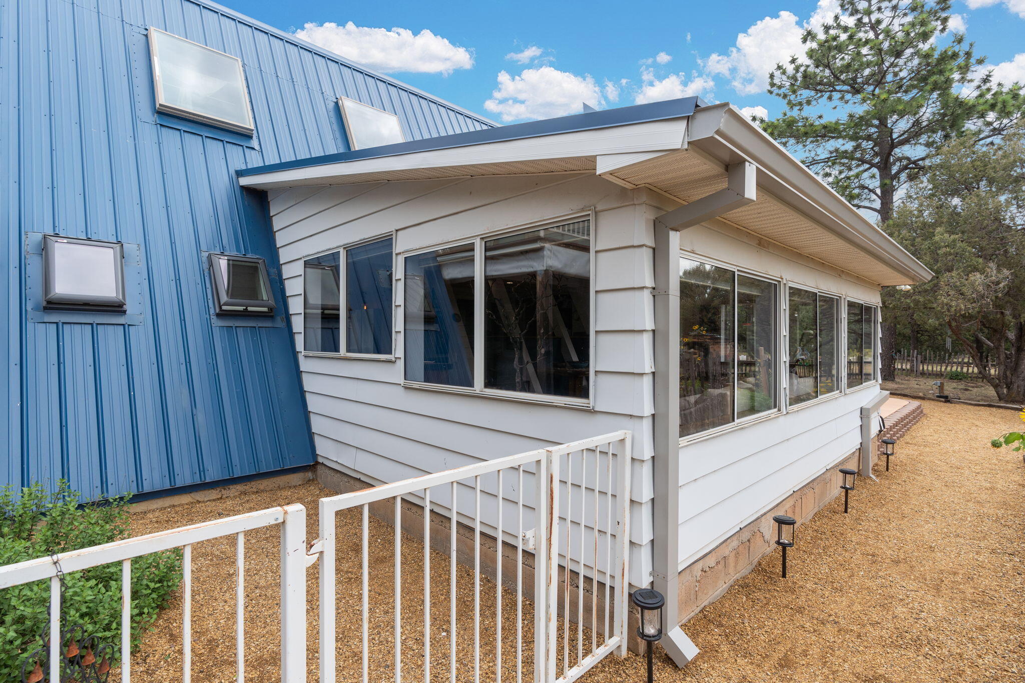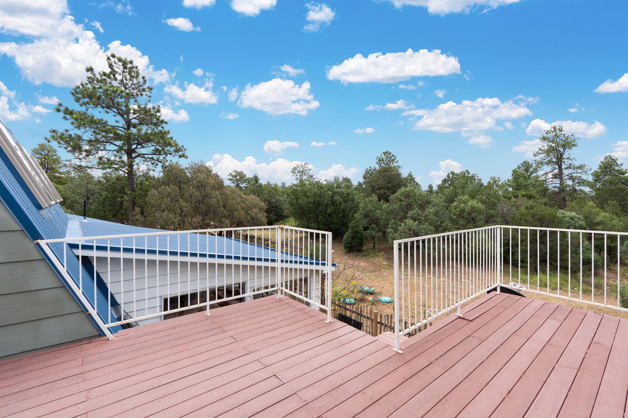 Discover this fantastic opportunity to live in the Mountains and Pines of Tijeras. This lovely 2 bedroom, 1 bathroom property offers Space, Flexibility, Comfort and Land. The main house has an open floor plan concept with a loft with pitched ceiling that offers more flexibility as a hobby room, game room or office. From the great room find big beautiful views of your own private oasis , mature trees, grassy lawn, and bird watching. Container gardening in place. Horses are a possibility here on this peaceful property. A second structure provides an oversized 2 cg, and attic for storage(must see). A fully finished heated guest suite currently being used as an exercise room with a private sauna, perfect for unwinding after a busy day. Entire property is fenced. Experience this